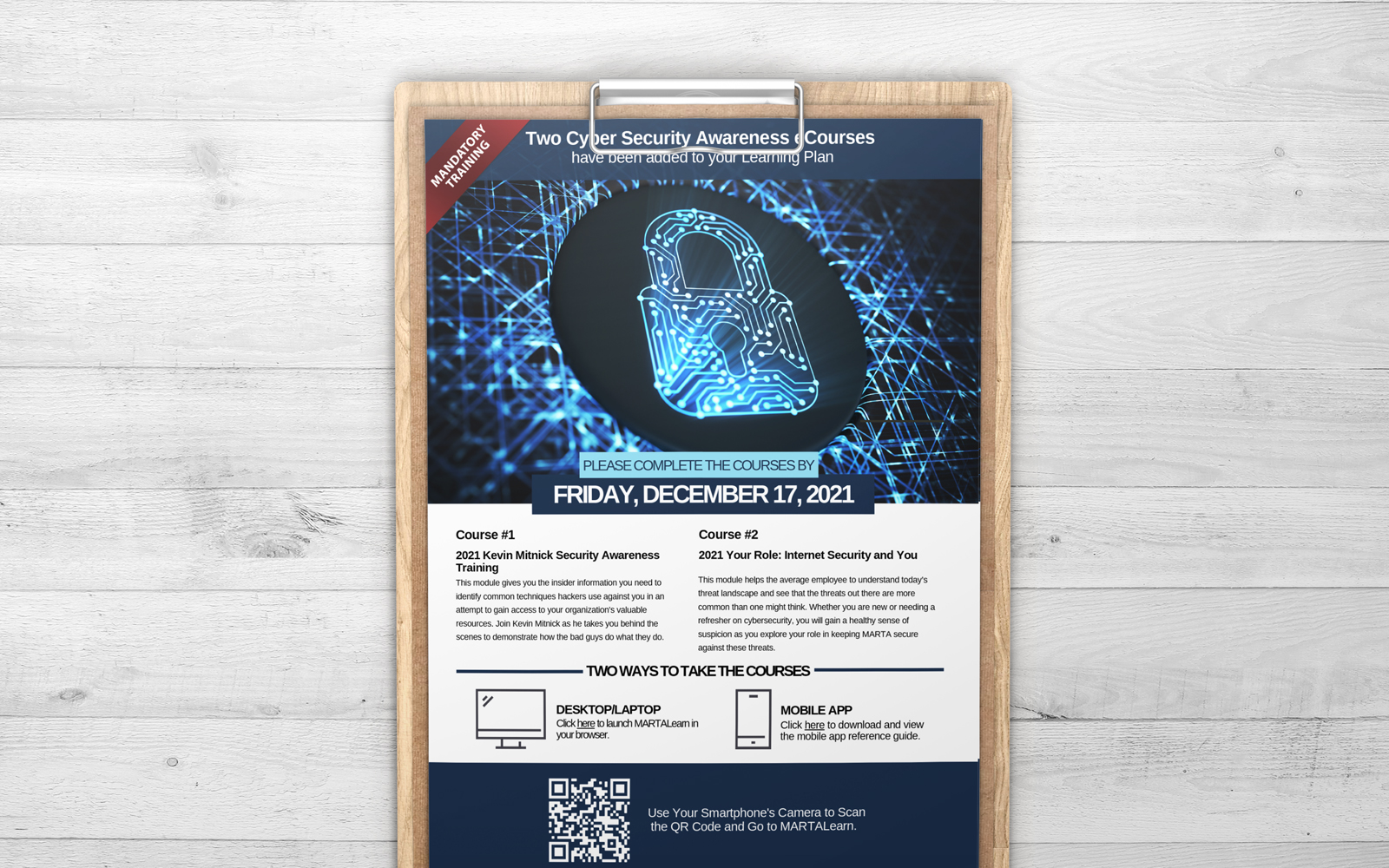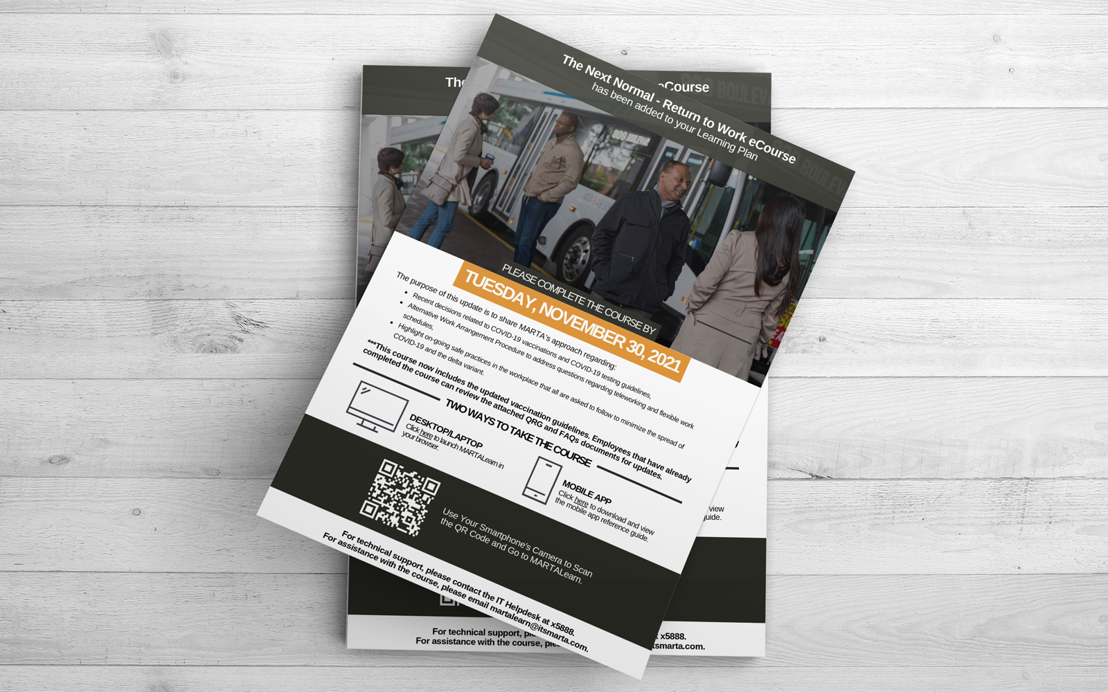 I created a common design for all training announcements. This helped with the cohesive experience across all training platforms. All of the training announcements have a photo that communicates what the course is about and is taken for the eCourse that is developed. From the training announcement design, there are other graphics that are developed for the LMS canvas as well as email that is sent to the entire organization that features a link for learners to click on and go to the trainings. There is also a QR code for learners using mobile devices.